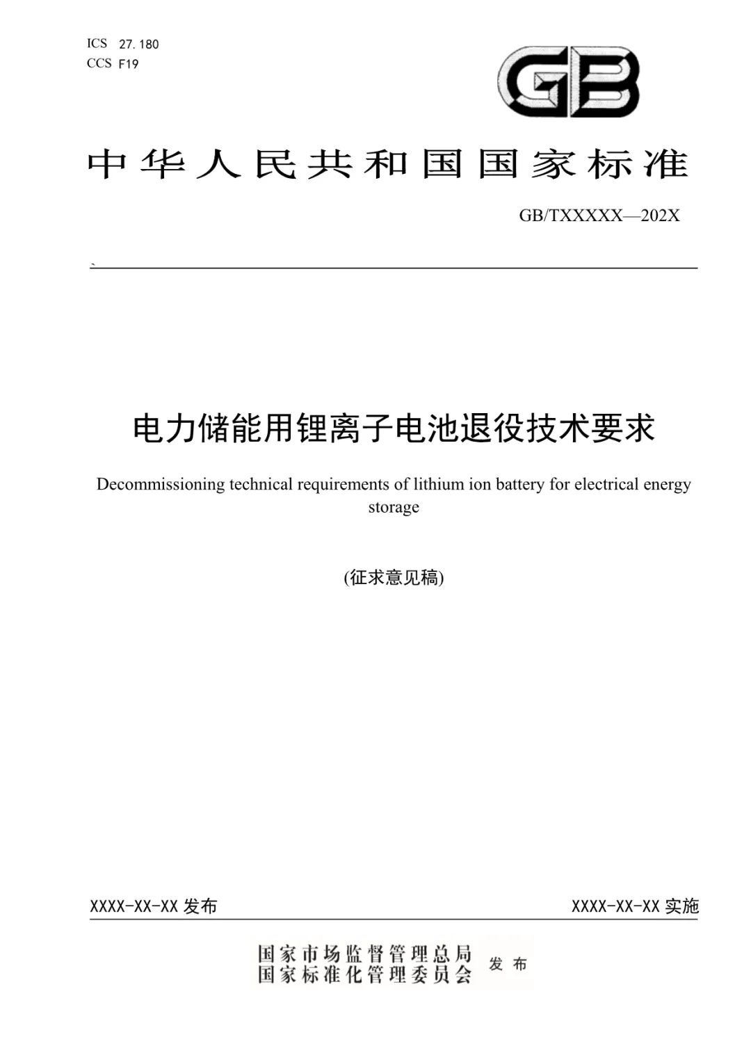 中國儲能網(wǎng)訊:國家標(biāo)準(zhǔn)化信息平臺發(fā)布關(guān)于征求國家標(biāo)準(zhǔn)《 電力儲能用鋰離子電池退役技術(shù)要求》意見的函。