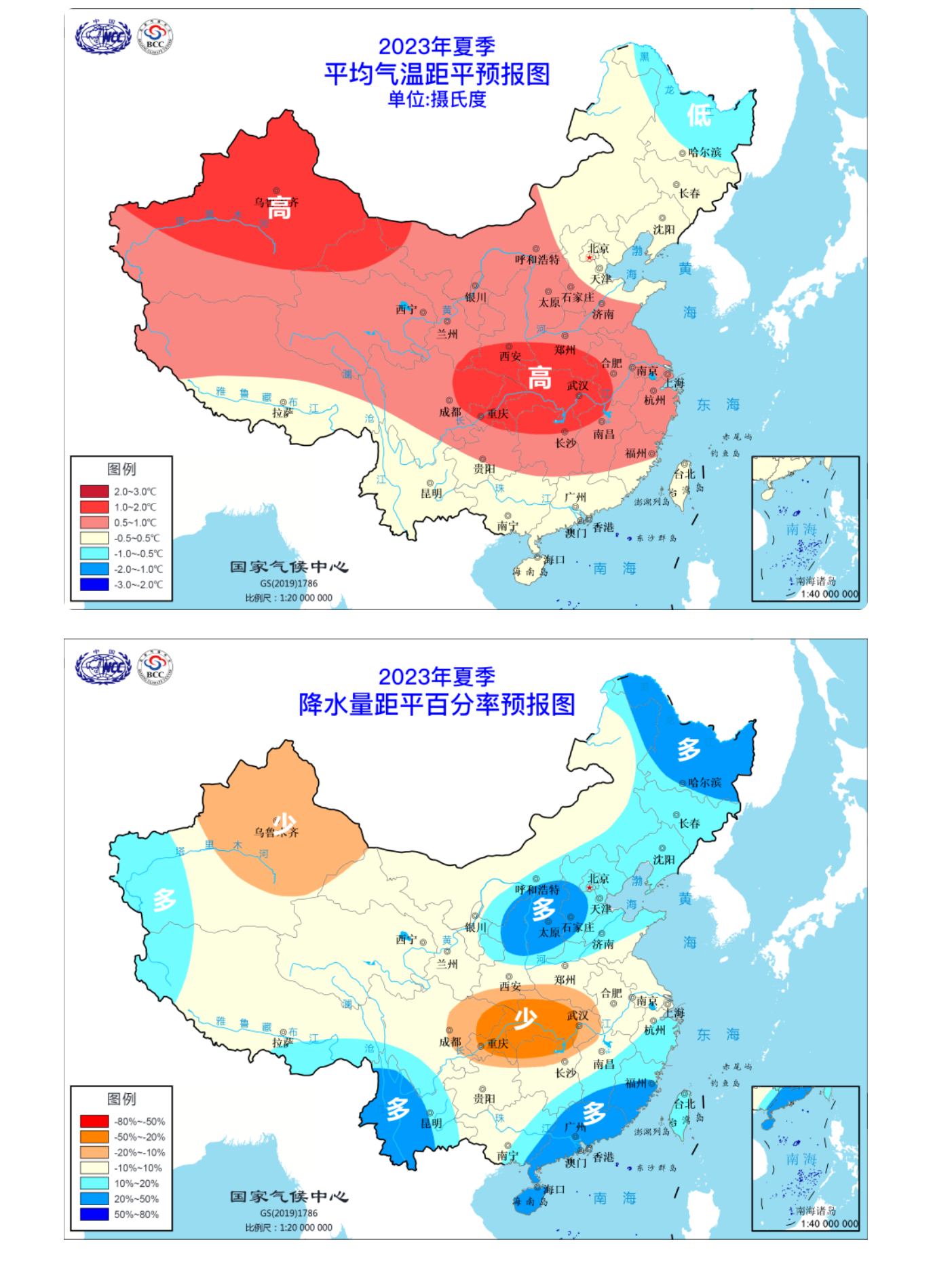 預(yù)計2023年夏季(6-8月),我國降水呈南北兩條多雨帶,長江中游降水偏少明顯;全國大部地區(qū)氣溫較常年同期偏高,長江中游等地高溫?zé)崂似唷?
