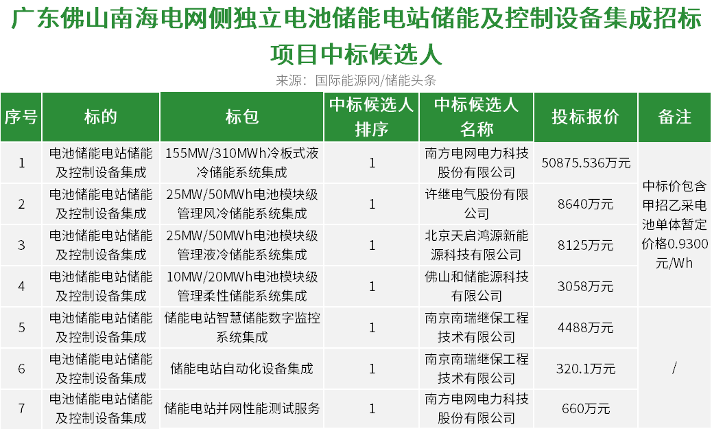 中國儲能網(wǎng)訊:4月28日,廣東佛山南海電網(wǎng)側(cè)獨立電池儲能電站儲能及控制設(shè)備集成招標(biāo)項目中標(biāo)候選人公示,項目建設(shè)規(guī)模300MW/600MWh,主要由300MW/600MWh儲能系統(tǒng),相關(guān)輔助配套設(shè)備以及智慧儲能數(shù)字化運營管控平臺等組成,項目分為9個標(biāo)包。