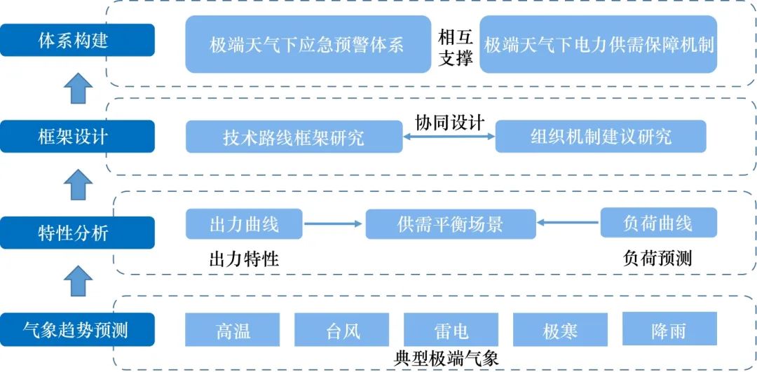 在供需結構方面,基于極端氣象特征、氣象發(fā)展趨勢研究成果,分析極端天氣下新能源波動、負荷可調(diào)節(jié)的電力供需平衡場景,攻關電力供需保障技術,構建電力系統(tǒng)應急組織機制,提出電力系統(tǒng)在極端天氣下的應急預警體系。