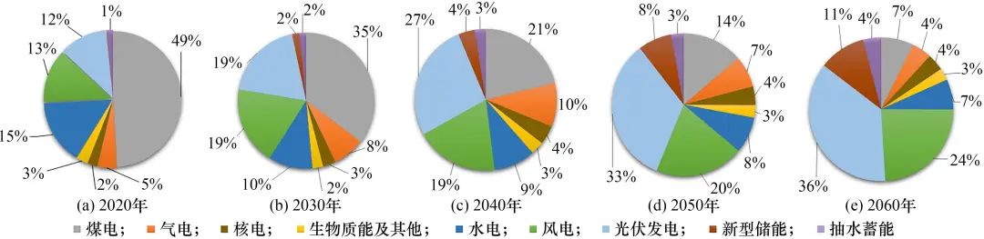 ③ 發(fā)展期(2051—2060年),非化石能源實現(xiàn)主體替代,在一次能源消費中的占比平穩(wěn)增長到90%,新能源成為主體消費能源。