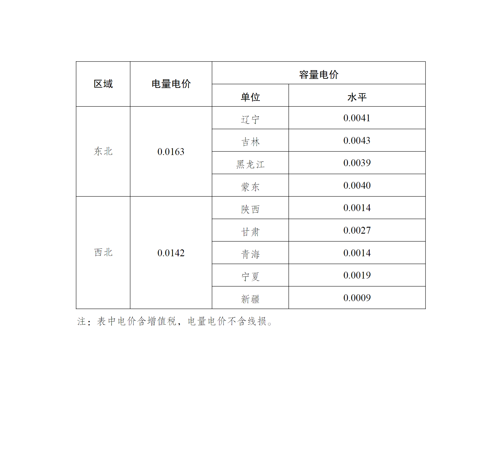 一、按照國家發(fā)展改革委《關(guān)于印發(fā)<區(qū)域電網(wǎng)輸電價格定價辦法>的通知》(發(fā)改價格規(guī)﹝2020﹞100號)和《關(guān)于印發(fā)<省級電網(wǎng)輸配電價定價辦法>的通知》(發(fā)改價格規(guī)﹝2020﹞101號)及有關(guān)規(guī)定,核定華北、華東、華中、東北、西北區(qū)域電網(wǎng)第三監(jiān)管周期兩部制輸電價格,具體見附件。其中,電量電價隨區(qū)域電網(wǎng)實際交易結(jié)算電量收??;容量電價隨各省級電網(wǎng)終端銷售電量(含市場化交易電量)收??;京津唐電網(wǎng)范圍內(nèi),位于北京、天津、河北境內(nèi)的電廠參與京津唐地區(qū)交易電量不納入華北電網(wǎng)電量電費計收范圍。