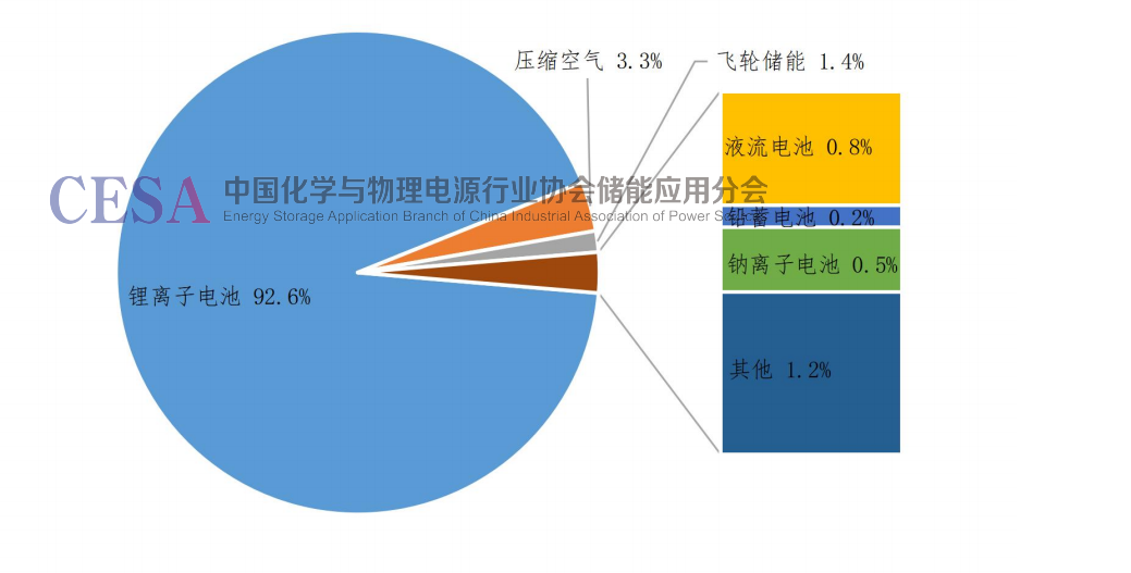 5.2022年中國(guó)新型儲(chǔ)能新增裝機(jī)中鋰離子電池占比為90.7%