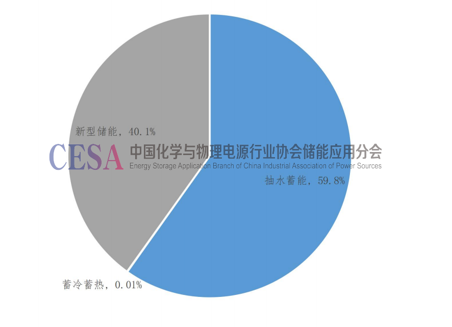 2022年中國(guó)儲(chǔ)能新增裝機(jī)量約14.7GW,其中:新型儲(chǔ)能新增裝機(jī)量約5.9GW,占比為40.1%;抽水蓄能新增裝機(jī)量約8.8GW,占比59.8%;蓄熱蓄冷新增裝機(jī)量約69.5MW。