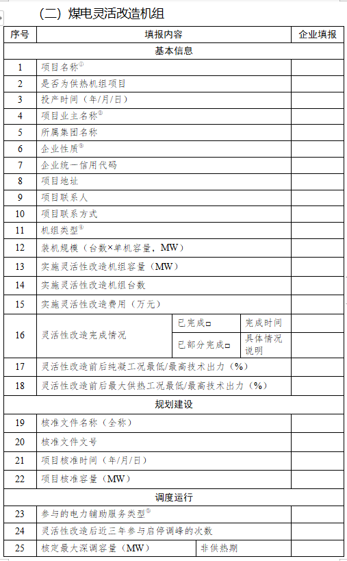 2.“十三五”以來實施靈活性改造、接入電壓等級220千伏及以上、單臺機(jī)組容量30萬千瓦及以上的煤電項目。