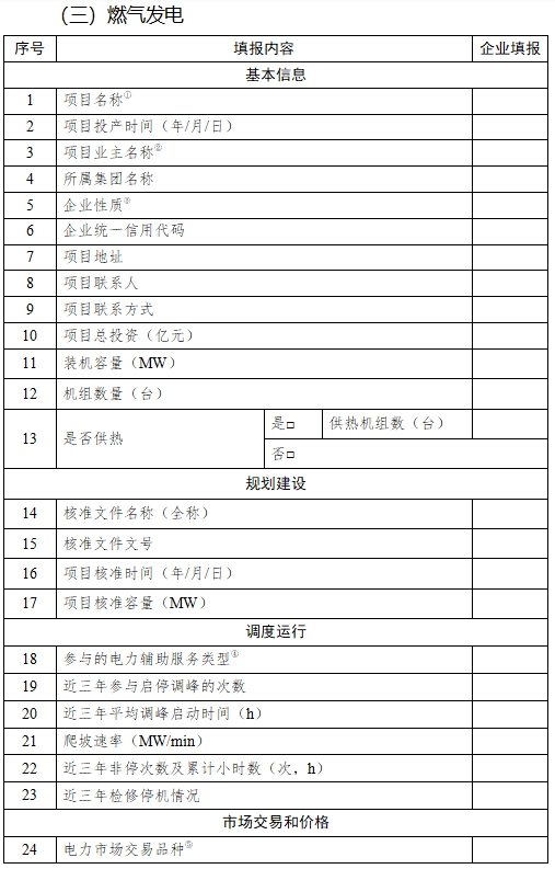 3.“十三五”以來投產(chǎn)、接入電壓等級110千伏及以上、單臺機(jī)組容量10萬千瓦及以上的燃?xì)獍l(fā)電項目。