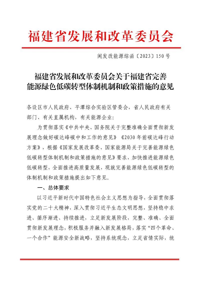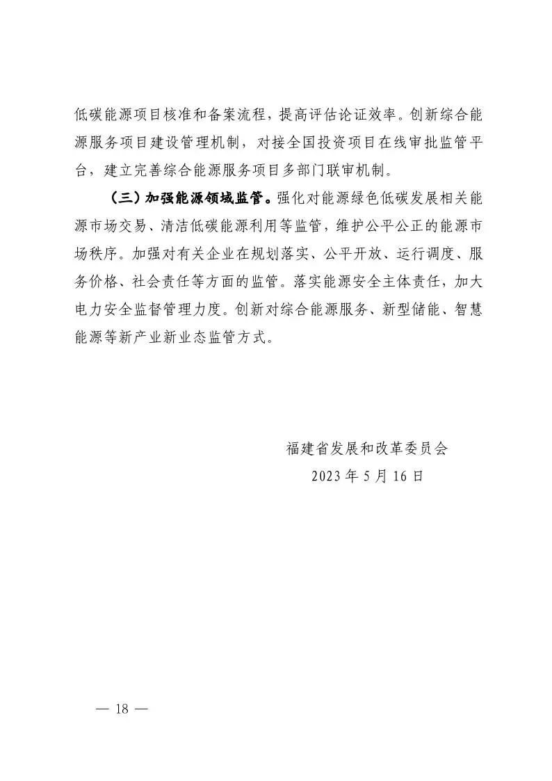 中國儲能網(wǎng)訊:5月18日,福建省發(fā)改委發(fā)布《關于福建省完善能源綠色低碳轉型體制機制和政策措施的意見》。