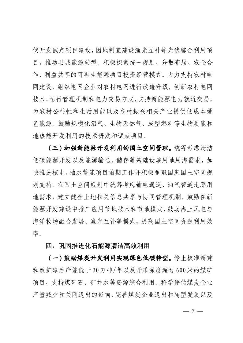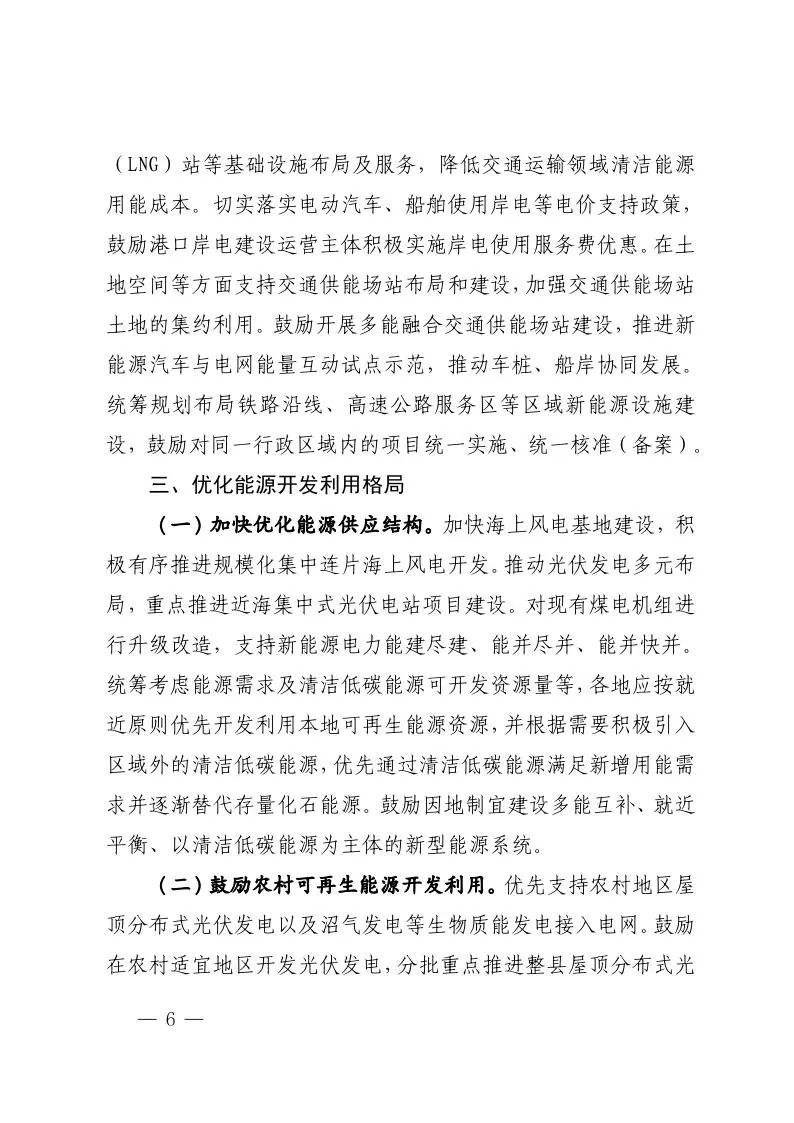 文件指出,加快優(yōu)化能源供應結構。加快海上風電基地建設,積極有序推進規(guī)模化集中連片海上風電開發(fā)。推動光伏發(fā)電多元布局,重點推進近海集中式光伏電站項目建設。對現(xiàn)有煤電機組進行升級改造,支持新能源電力能建盡建、能并盡并、能并快并統(tǒng)籌考慮能源需求及清潔低碳能源可開發(fā)資源量等,各地應按就近原則優(yōu)先開發(fā)利用本地可再生能源資源,并根據(jù)需要積極引入?yún)^(qū)域外的清潔低碳能源,優(yōu)先通過清潔低碳能源滿足新增用能需求并逐漸替代存量化石能源。鼓勵因地制宜建設多能互補、就近平衡、以清潔低碳能源為主體的新型能源系統(tǒng)。