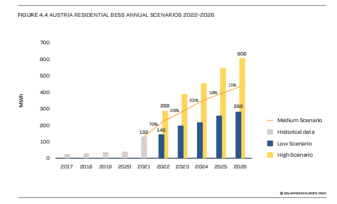 得益于上述有利條件,2021年,奧地利戶儲市場增長了2倍,達到132MWh,是歐洲第三大戶儲市場。