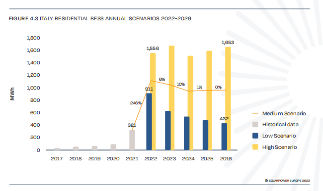 2022年,意大利新增戶儲裝機首次突破GWh規(guī)模,有望達到1.1GWh,增速為246%。而在高景氣度下,這一預測值為1.56GWh。