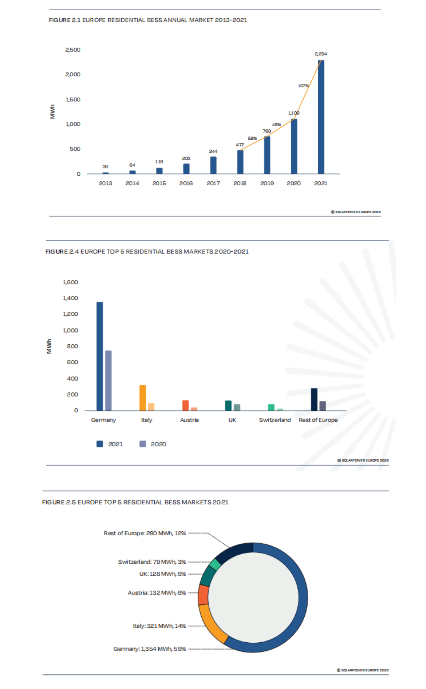 目前,無論在光伏,還是戶儲領域,德國都是最大市場。2021年,德國戶用儲能新增裝機1.3GWh,年增長率為81%,占到歐洲總份額的59%,相比2020年下降了9個百分點。