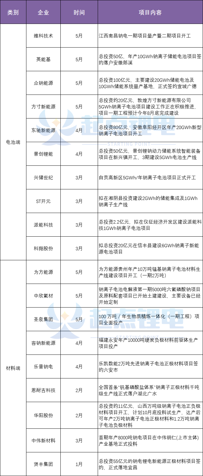 值得一提的是,在這些項目中,眾鈉能源成為首個落地百億級別鈉電池項目的企業(yè)。