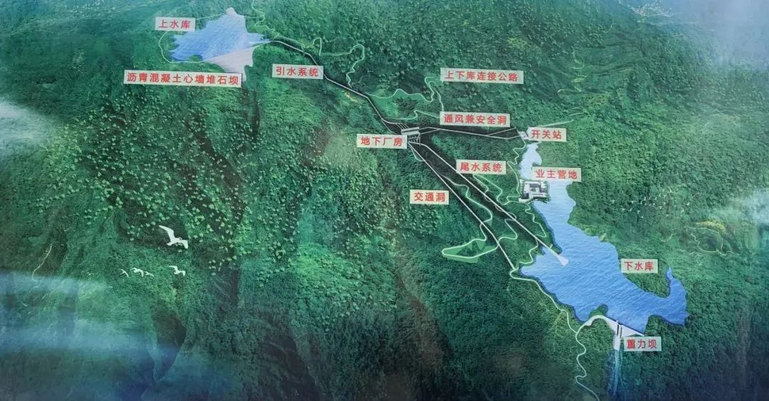 電站位于湖南省郴州市桂陽縣和衡陽市常寧市交界處,距郴州市、長沙市直線距離分別約53km、235km。樞紐工程由上水庫、輸水發(fā)電系統(tǒng)、下水庫及開關站等組成。上水庫位于舂陵水一級支流野鹿河的支流東瓜沖溝上游;下水庫位于桂陽縣和常寧市交界的舂陵水一級支流湖溪河上。