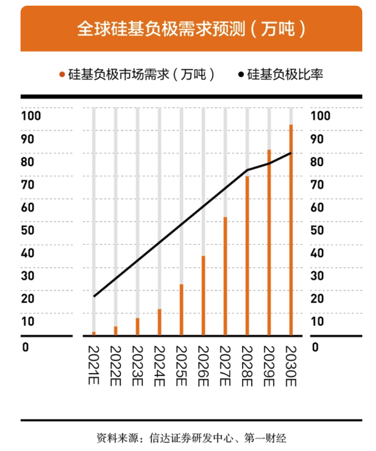 動(dòng)力電池尤其是4680圓柱電池的需求上量,逐漸打開(kāi)了硅基負(fù)極的市場(chǎng)空間。