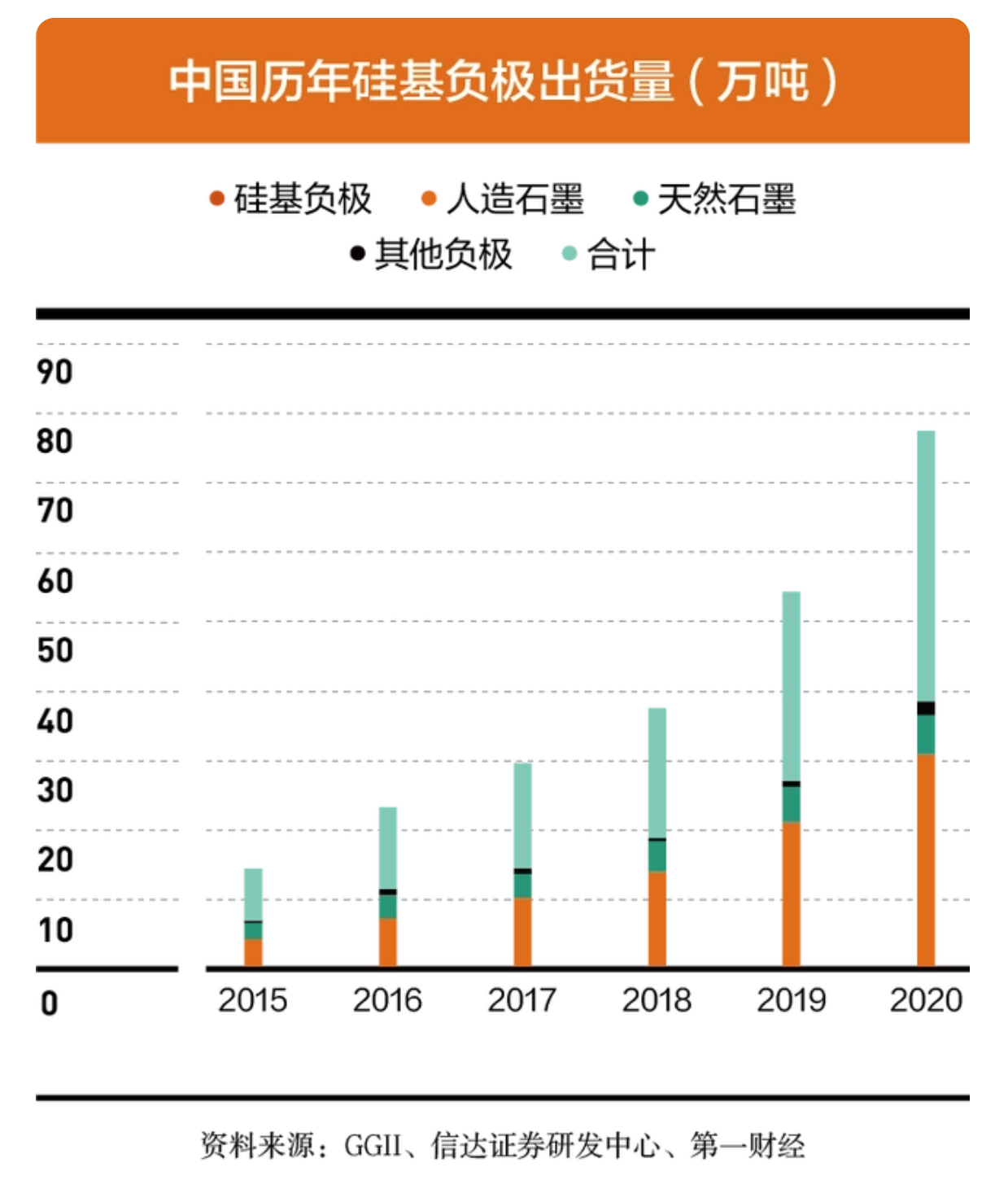 與此同時(shí),快充的快速到來(lái)也對(duì)硅基負(fù)極市場(chǎng)起到了催化作用。