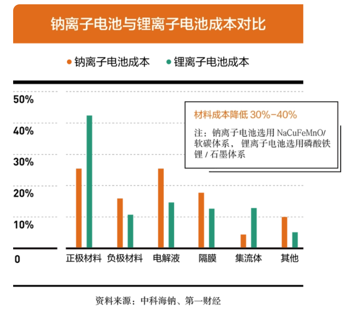 從成本占比來(lái)看,中科海鈉測(cè)算鈉電池的負(fù)極材料占鈉電池總成本的16%左右,高于鋰電池的5%-8%。