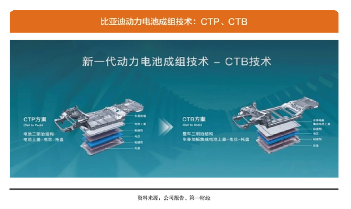 CTB是比亞迪新提出的一種全新電芯集成方式。從嚴(yán)格意義上來(lái)講,CTB術(shù)是CTC技術(shù)的一種,也是CTP技術(shù)的延伸。