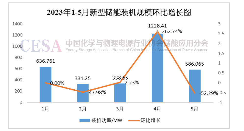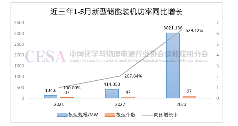 圖3 2023年1-5新型儲(chǔ)能裝機(jī)規(guī)模同比增長(zhǎng)圖