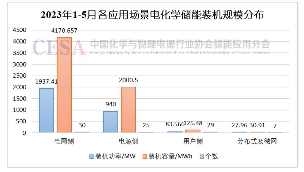 圖6 2023年1-5月各應(yīng)用場(chǎng)景電化學(xué)儲(chǔ)能裝機(jī)規(guī)模