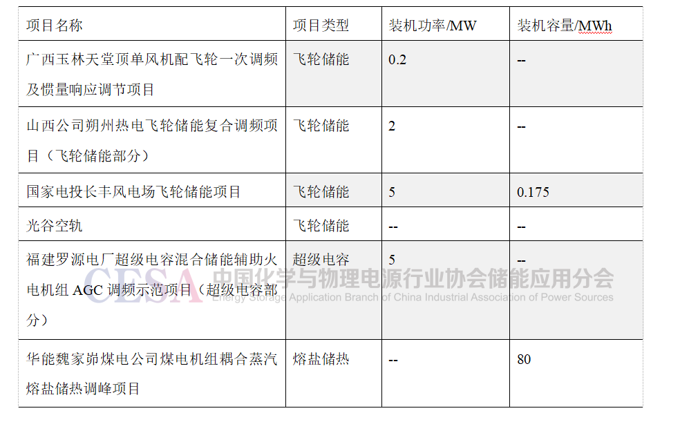 表1 2023年1-5月非電化學(xué)新型儲(chǔ)能項(xiàng)目統(tǒng)計(jì)