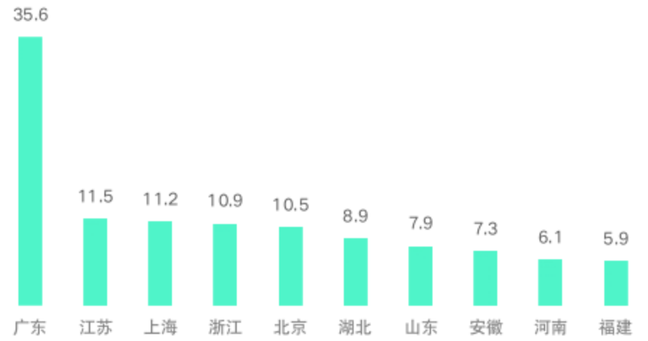 圖:公共充電樁TOP10省份(萬臺)