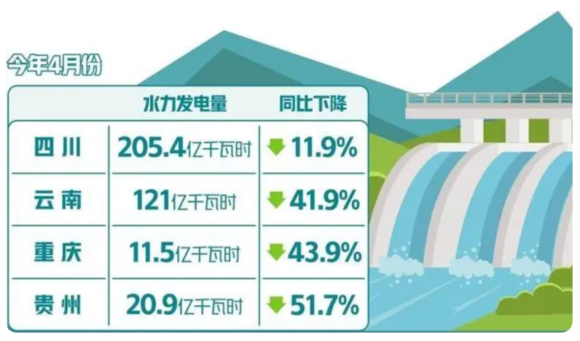 中國儲能網(wǎng)訊:國家統(tǒng)計局?jǐn)?shù)據(jù)顯示,今年4月份,四川水電發(fā)電量205.4億千瓦時,同比下降11.9%;云南水電發(fā)電量121億千瓦時,同比下降41.9%。隨著用電量不斷攀升,今夏西南地區(qū)電力供需形勢如何?如何積極保障生產(chǎn)生活基本用電需求?