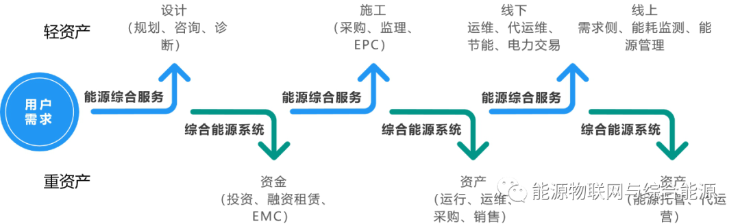 綜合能源服務(wù)業(yè)務(wù)類型大致分為以重資產(chǎn)的綜合能源系統(tǒng)投資建設(shè)運(yùn)營和以輕資產(chǎn)的能源綜合服務(wù)兩類。