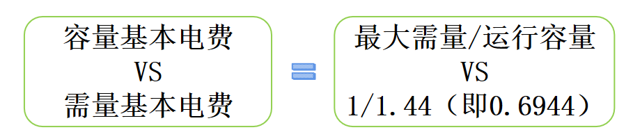 當(dāng)每月每千伏安用電量達(dá)到260千瓦時及以上時,當(dāng)月需量電價按核定標(biāo)準(zhǔn)的90%執(zhí)行,需量電價≈1.44×容量電價