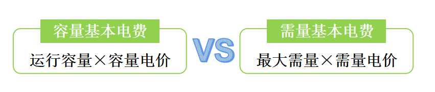 進(jìn)入正題前,先來個知識點小溫習(xí)。簡單來說,兩部制電價用戶電費由電量電費疊加基本電費組成,其中基本電費可選擇按變壓器容量、實際最大需量、合同最大需量等三種方式之一計收。