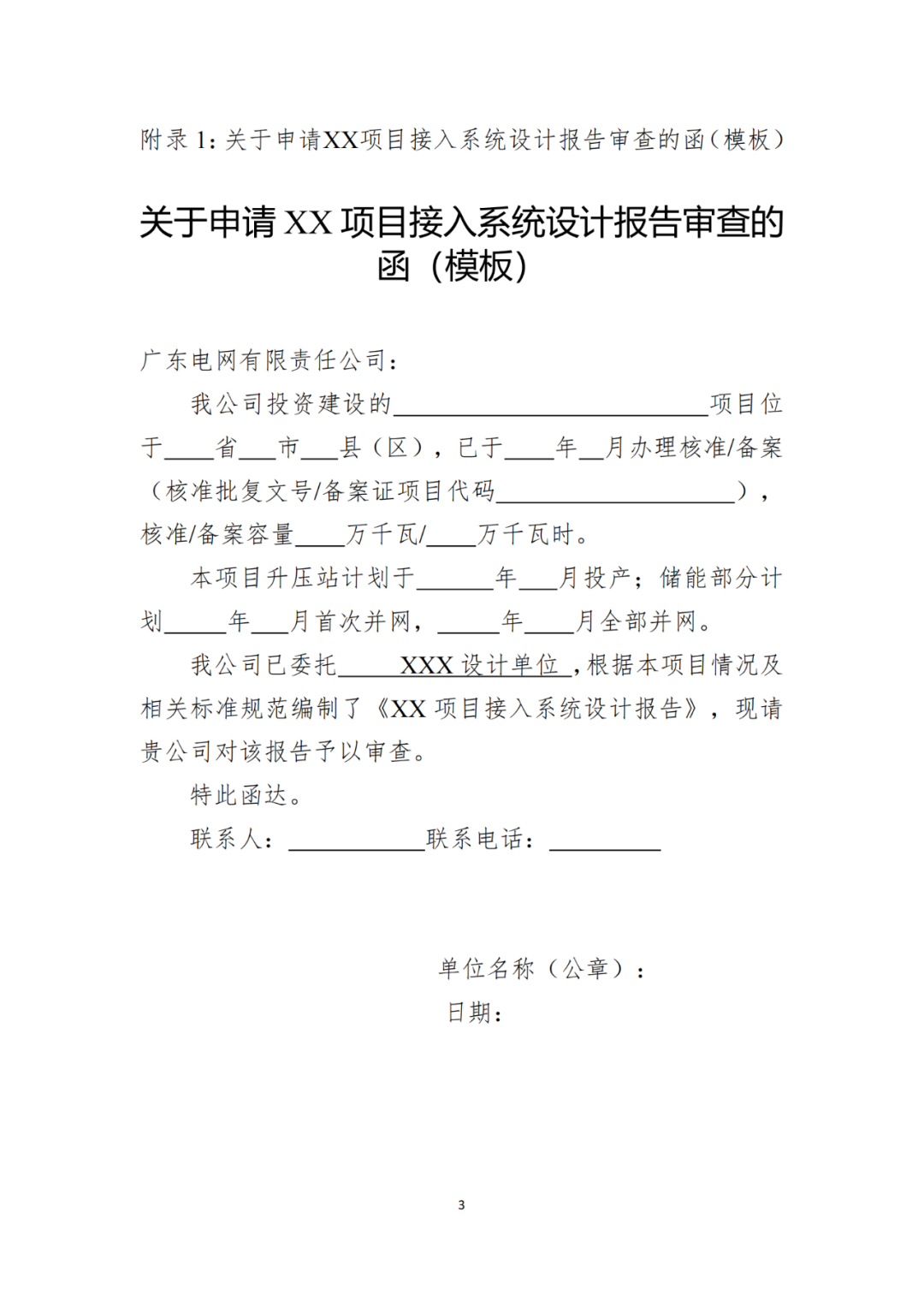 文中提到的致函電網(wǎng)提出并網(wǎng)申請的函件、儲能項(xiàng)目接入系統(tǒng)審查受理及批復(fù)需提交的相關(guān)材料,模板如下: