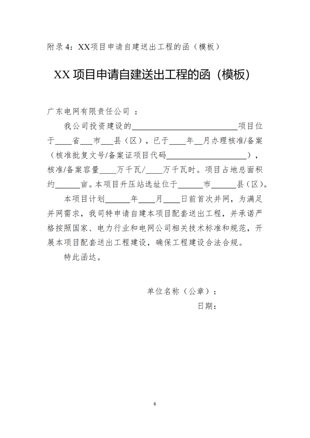 1、致函電網(wǎng)提出并網(wǎng)申請的函件(需明確計(jì)劃開工時(shí)間、并網(wǎng)時(shí)間、建設(shè)規(guī)模、建設(shè)地點(diǎn),以及客戶負(fù)責(zé)并網(wǎng)申請工作的聯(lián)系人、電話、電子郵箱等);