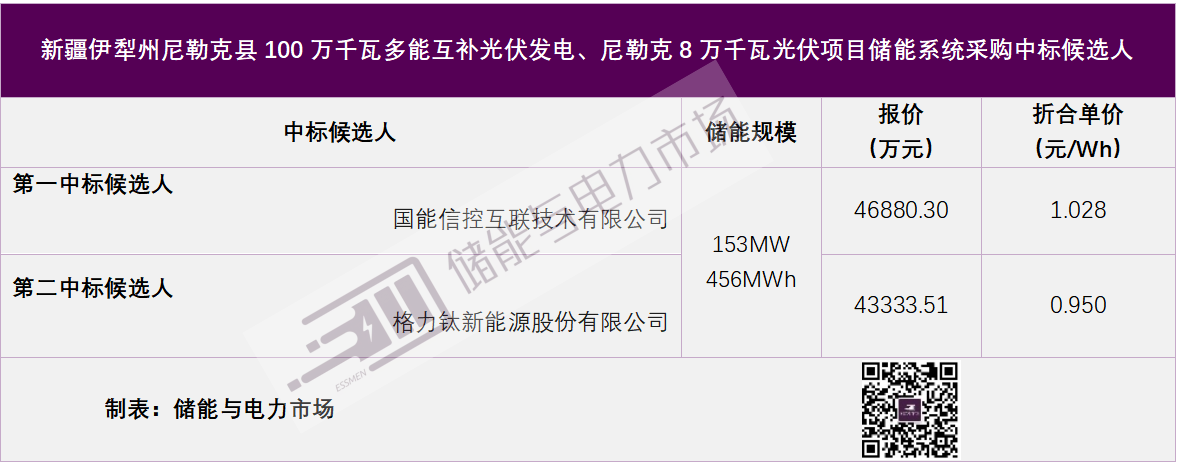 國能信控互聯(lián)技術(shù)有限公司以總報(bào)價(jià)46880.3萬元,折合單價(jià)1.028元/Wh,成為第一中標(biāo)候選人。