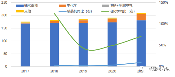 抽水蓄能仍為主流,電化學(xué)儲(chǔ)能占比逐年上升、未來(lái)幾年將貢獻(xiàn)全球儲(chǔ)能主要增量。根據(jù)CNESA統(tǒng)計(jì),截至2021年底,全球抽水蓄能裝機(jī)總規(guī)模達(dá)180.5GW,占總規(guī)模比例達(dá)86.2%。