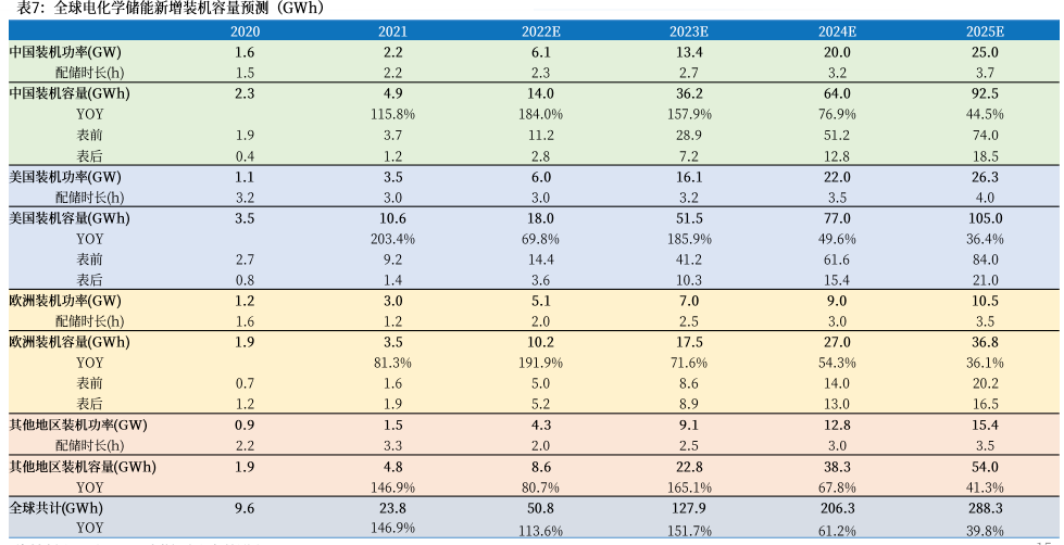 美國(guó)市場(chǎng)憑借IRA法案的儲(chǔ)能補(bǔ)貼政策,儲(chǔ)能成為獨(dú)立補(bǔ)貼主體并享有10年的投資稅收抵免比例。表前大儲(chǔ)是當(dāng)前的主要趨勢(shì),預(yù)計(jì)到2023年,電化學(xué)儲(chǔ)能裝機(jī)容量將達(dá)到16.6GW,同比增長(zhǎng)168.0%;至2025年,電化學(xué)儲(chǔ)能累計(jì)裝機(jī)容量預(yù)計(jì)將超過(guò)75GW,CAGR預(yù)計(jì)為88.4%。