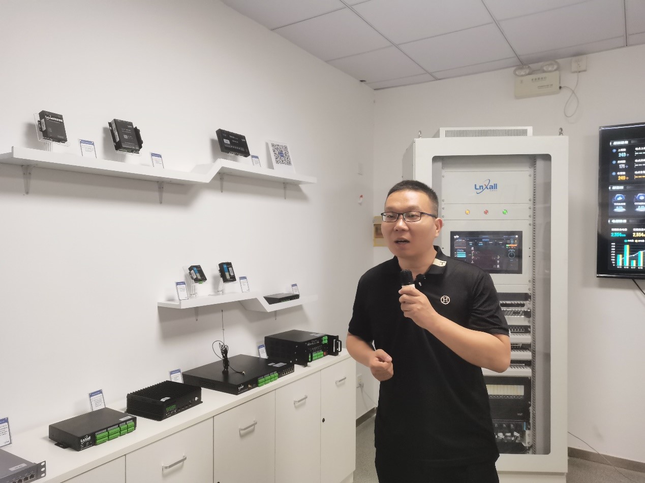 在簡捷物聯(lián)展廳,王雷雷向?qū)<医M一行介紹了能量管理系統(tǒng)(EMS)、站控能量柜、戶用儲能數(shù)采設(shè)備及云平臺、移動換電電池管理系統(tǒng)等核心產(chǎn)品,以及企業(yè)所獲得的榮譽。