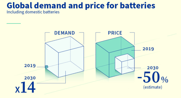 歐盟預(yù)計(jì)的全球電池需求量增長