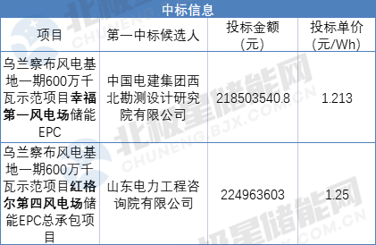 中國儲(chǔ)能網(wǎng)訊:7月12日,國家電投內(nèi)蒙古烏蘭察布風(fēng)電儲(chǔ)能EPC招標(biāo)公布中標(biāo)候選人。中國電建集團(tuán)西北勘測設(shè)計(jì)研究院有限公司和山東電力工程咨詢院有限公司分別為兩個(gè)項(xiàng)目的第一中標(biāo)候選人。