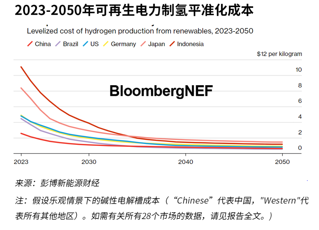 由于通貨膨脹和融資成本上升,2023年制氫平準(zhǔn)化成本(LCOH2)略有上升。盡管如此,到2030年,在五個市場上,與現(xiàn)有灰氫工廠的邊際成本相比,綠氫將變得具有競爭力。