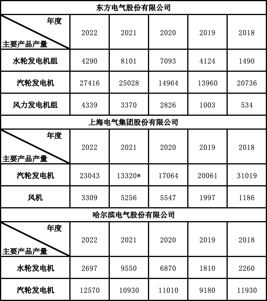 *上海電氣集團(tuán)股份有限公司未披露2021年汽輪發(fā)電機(jī)銷量,數(shù)據(jù)根據(jù)2022披露的銷量與增長(zhǎng)率計(jì)算得出。