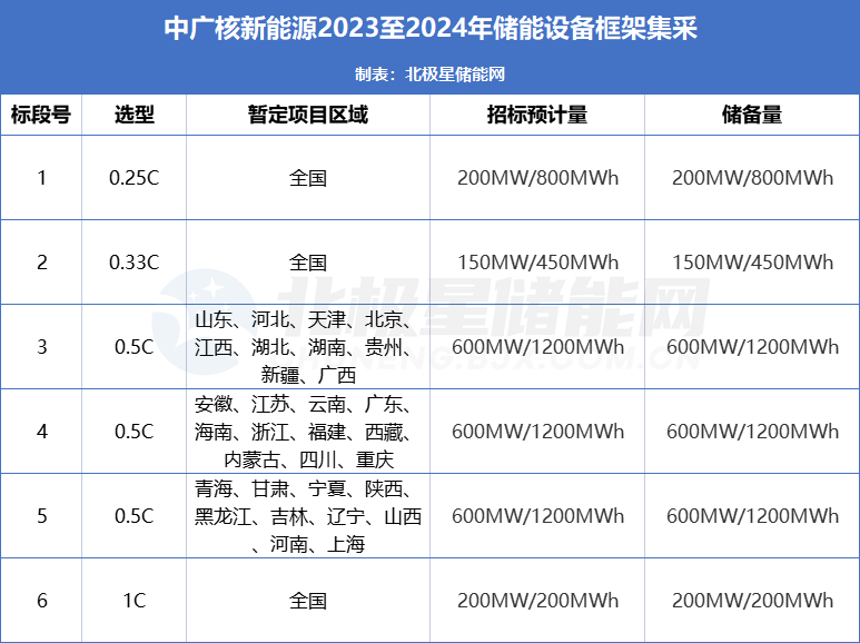 中國(guó)儲(chǔ)能網(wǎng)訊:7月18日,中廣核新能源發(fā)布2023至2024年儲(chǔ)能設(shè)備框架集采公告。招標(biāo)共分6個(gè)標(biāo)段,招標(biāo)預(yù)計(jì)量2.35GW/5.05GWh,備用量2.35GW/5.05GWh。