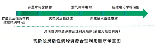 基于上述對當(dāng)前電力系統(tǒng)內(nèi)的靈活性調(diào)峰電源的優(yōu)缺點進(jìn)行分析,最終總結(jié)出現(xiàn)階段各類靈活性調(diào)峰資源的合理利用順序如圖所示。