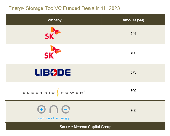 2023年上半年前五大儲能風險投資交易分別是:SK公司在兩筆交易中分別籌集9.44億美元和4億美元;Libode New Material公司籌集3.75億美元;Electriq Power公司和Our Next Energy公司各自籌集了3億美元。