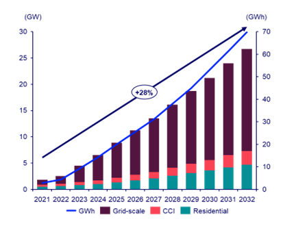 Wood Mackenzie公司高級(jí)研究分析師Kashish Shah說(shuō),“近年來(lái)可再生能源發(fā)電量的激增和競(jìng)爭(zhēng)激烈的市場(chǎng)設(shè)計(jì),使澳大利亞成為全球最具吸引力的電網(wǎng)規(guī)模儲(chǔ)能市場(chǎng)之一。得益于競(jìng)爭(zhēng)激烈的批發(fā)市場(chǎng)和頻率控制市場(chǎng)為電池儲(chǔ)能系統(tǒng)提供了多樣化的收入來(lái)源,以及澳大利亞政府提供的大量資金為儲(chǔ)能項(xiàng)目提供了收入確定性,我們預(yù)計(jì)從現(xiàn)在到2032年,澳大利亞部署的電池儲(chǔ)能系統(tǒng)的裝機(jī)容量將增加28%。”