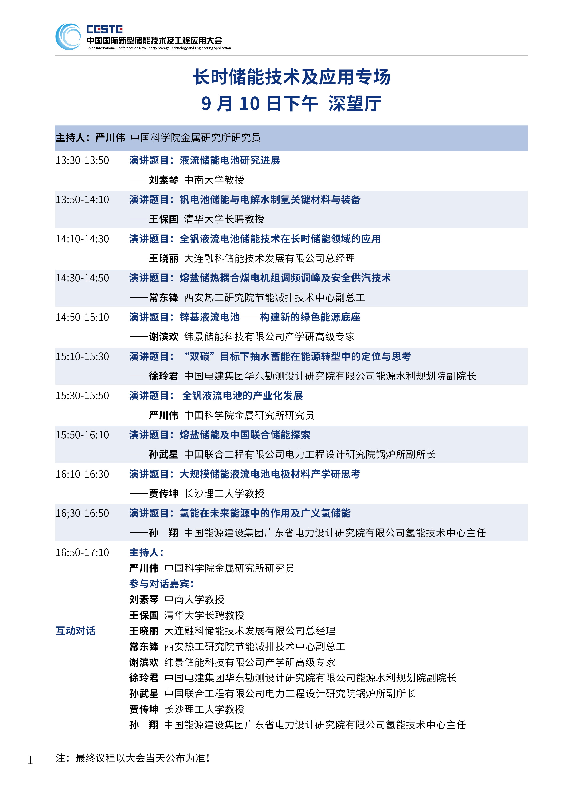 本屆大會(huì)將安排:大會(huì)開幕式暨碳中和能源院士高峰論壇、長時(shí)儲(chǔ)能技術(shù)及應(yīng)用、共享儲(chǔ)能、工商業(yè)儲(chǔ)能、混合儲(chǔ)能解決方案、安全與系統(tǒng)集成、新能源動(dòng)力系統(tǒng)控制技術(shù)、儲(chǔ)能金融與投資、全生命周期碳足跡分析與應(yīng)用技術(shù)、儲(chǔ)能材料、回收與裝備等10個(gè)專場論壇,以下為長時(shí)儲(chǔ)能專場議程。
