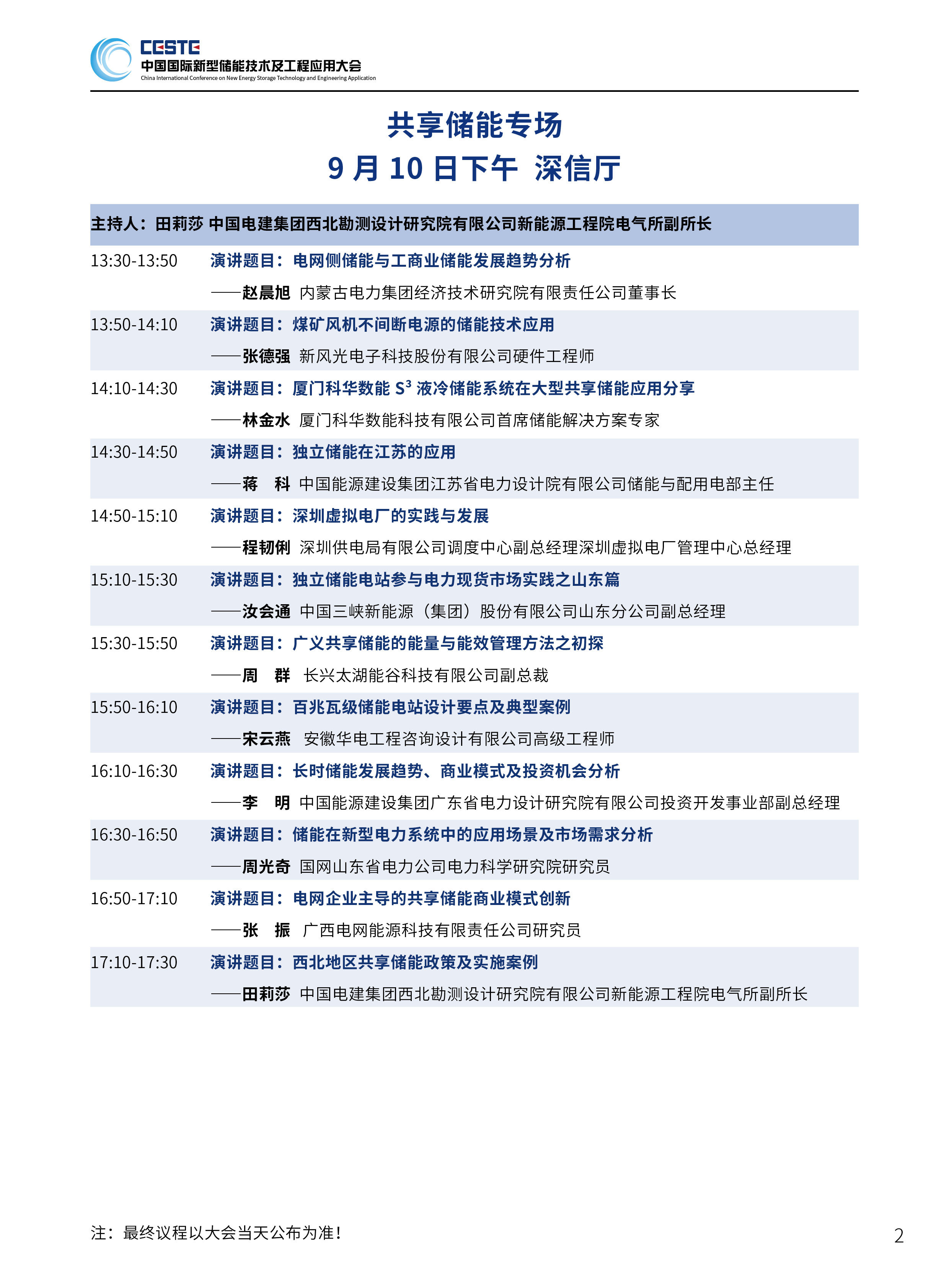 本屆大會將安排:大會開幕式暨碳中和能源院士高峰論壇、長時儲能技術(shù)及應(yīng)用、共享儲能、工商業(yè)儲能、混合儲能解決方案、安全與系統(tǒng)集成、新能源動力系統(tǒng)控制技術(shù)、儲能金融與投資、全生命周期碳足跡分析與應(yīng)用技術(shù)、儲能材料、回收與裝備等10個專場論壇,以下為共享儲能專場議程。