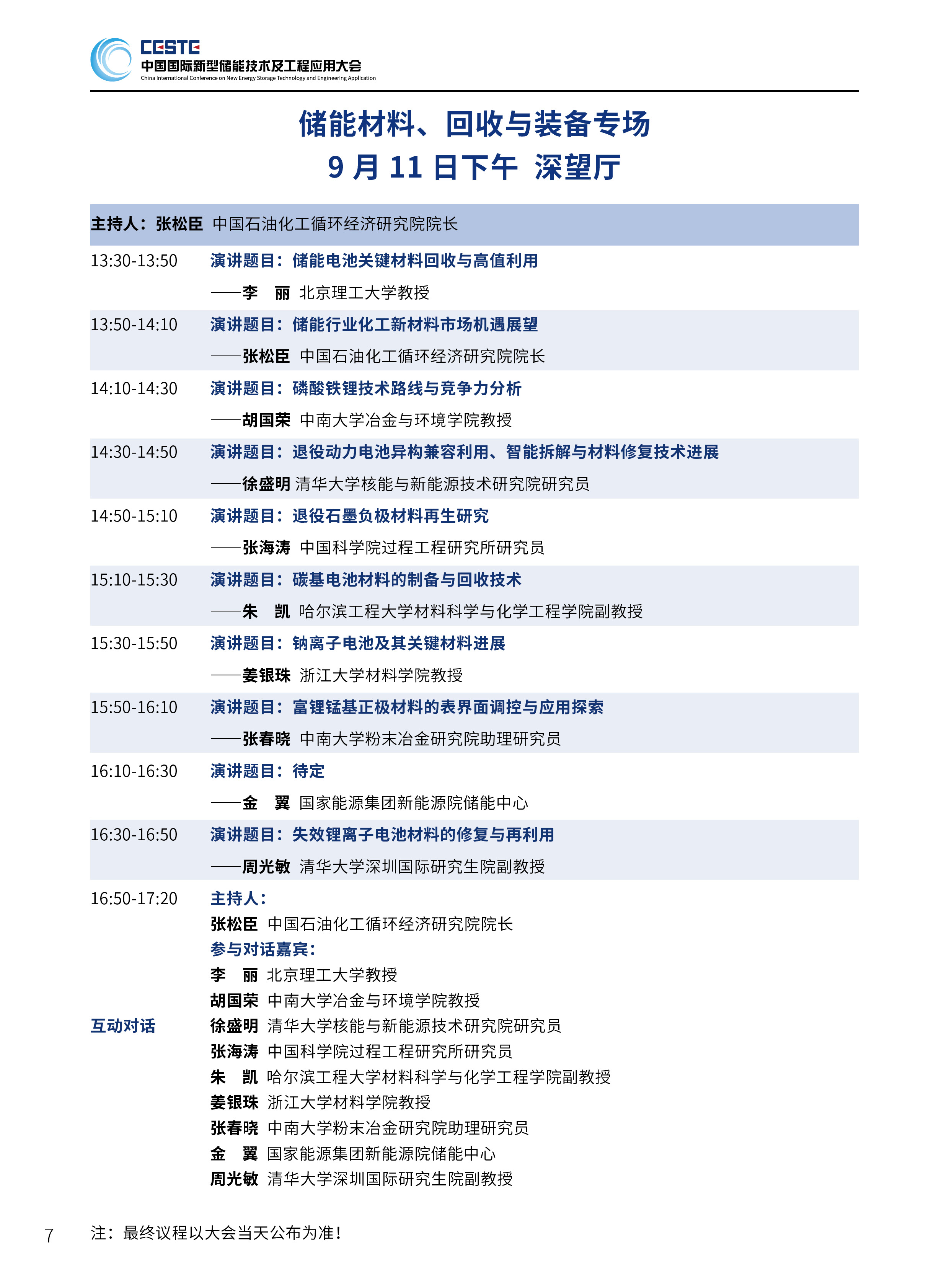 本屆大會(huì)將安排:大會(huì)開幕式暨碳中和能源院士高峰論壇、長時(shí)儲(chǔ)能技術(shù)及應(yīng)用、共享儲(chǔ)能、工商業(yè)儲(chǔ)能、混合儲(chǔ)能解決方案、安全與系統(tǒng)集成、新能源動(dòng)力系統(tǒng)控制技術(shù)、儲(chǔ)能金融與投資、全生命周期碳足跡分析與應(yīng)用技術(shù)、儲(chǔ)能材料、回收與裝備等10個(gè)專場論壇,以下為儲(chǔ)能材料、回收與裝備專場議程。