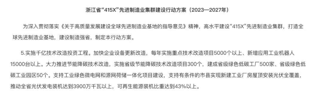 日前,浙江省政府印發(fā)《浙江省“415X”先進(jìn)制造業(yè)集群建設(shè)行動方案(2023—2027年)》指出,支持工業(yè)綠色微電網(wǎng)和源網(wǎng)荷儲一體化項(xiàng)目建設(shè),支持有條件的縣(市、區(qū))新建工業(yè)廠房屋頂光伏全覆蓋,到2025年全市累計光伏發(fā)電裝機(jī)容量達(dá)300萬千瓦,清潔能源裝機(jī)占比49%。溫州市積極響應(yīng)行動方案,建成該市首個“光伏+儲能+充電+放電+電池檢測“五位一體”綠色低碳綜合能源示范站。
