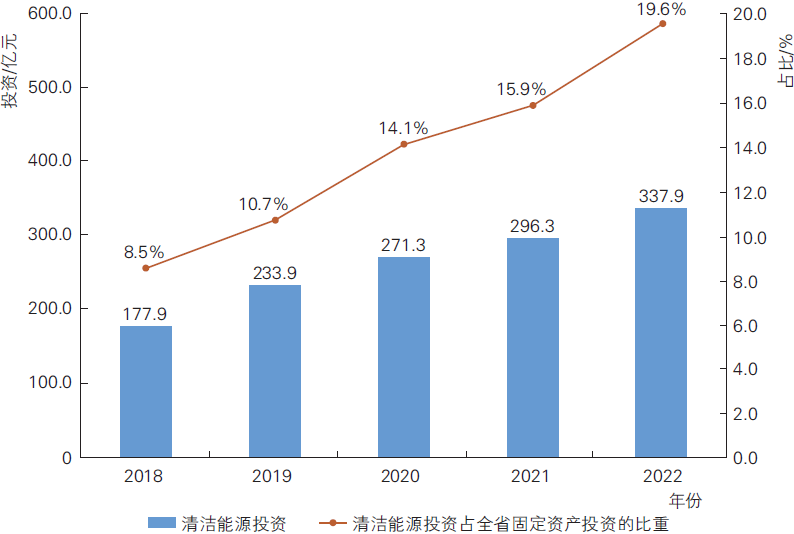 2018-2022年青海省清潔能源投資及占全省固定資產(chǎn)投資比重