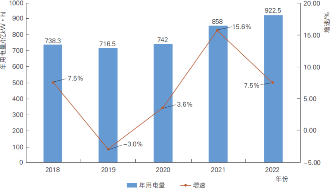 2018-2022年青海省全社會(huì)用電量及增速變化