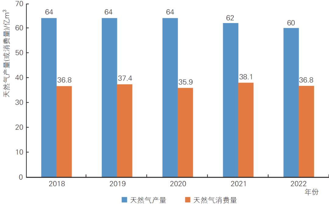 2018-2022年青海省天然氣生產(chǎn)與消費(fèi)量變化情況